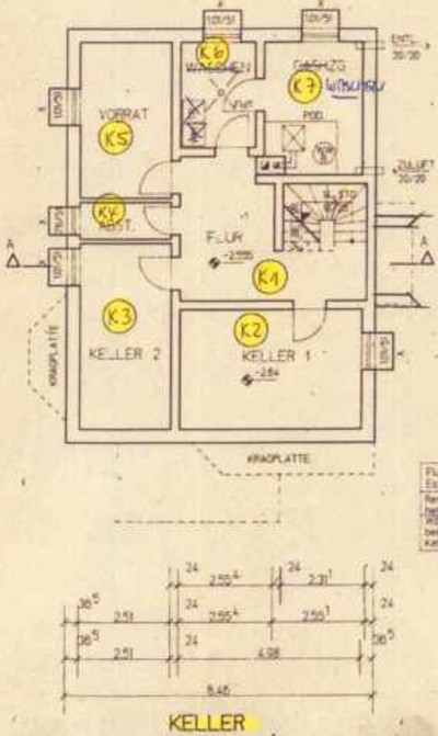 (K1), Keller (K2), Keller (K3), Abstellraum (K4), Vorrat (K5), Keller (K6),